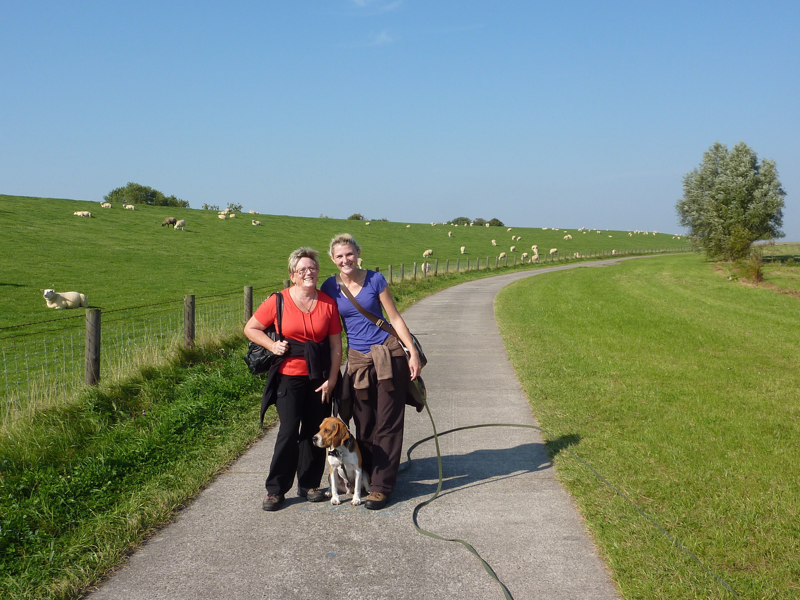 Da Thomas und ich uns nach reichlicher Überlegung dazu entschlossen haben einen weiteren Beagle bei uns aufzunehmen und es unbedingt ein Mädchen aus dem Deistertal sein sollte, beschlossen wir einen Kurzurlaub an der Nordsee zu machen und die Familie Kraemer doch gleich in Soltau zu besuchen. So fuhren wir im September vom Schwarzwald nach Ostfriesland in das schöne kleine Städtchen Butjadingen. Mitten in der Nacht nach 8 Std fahrt kamen wir endlich in unserer Ferienwohnung direkt am Deich an. Als wir aus dem Auto stiegen, fielen uns sofort die süßen Deichschafe auf, die im Mondschein vor sich hin grasten. Wir beschlossen dann gleich ins Bett zu gehen, da die Fahrt durch halb Deutschland doch sehr anstrengend war.