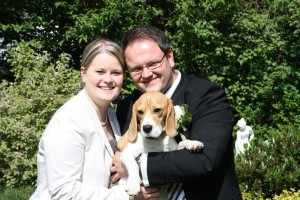Meine anfänglichen Träumereien Emma könnte uns die Ringe in die Kirche bringen, musste ich schnell begraben, denn Emma ganz Beagle, hätte bestimmt alles aufregender gefunden als Frauchen und Herrchen. Eine Hochzeit ist ja ohnehin nicht so wirklich toll für einen Hund. Aber Emma sollte ja auch nicht irgendwo bleiben. Hätten wir über Nelly nicht Uwe und Sabine mit Finja aus dem F-Wurf kennengelernt, wären es wahrscheinlich nie ein so entspanntes Fest und so sorgenlose Flitterwochen für uns geworden, denn die Drei nahmen Emma liebevoll bei sich auf. Bei Sabine, Uwe und Finja hatte es Emma prima. Besser untergebracht, konnten wir Emma nicht wissen.
